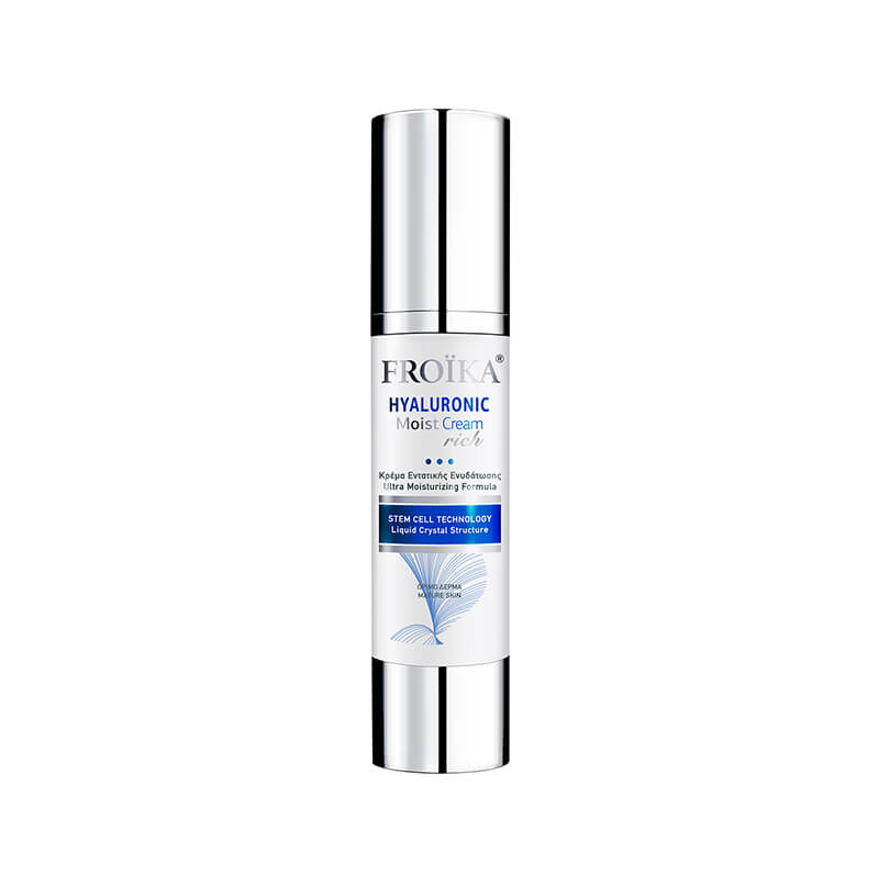 FROIKA sodrios tekstūros intensyviai drėkinamasis veido kremas sausai ir labai sausai odai (Hyaluronic Moist Cream Rich, 50 ml). Kasdieniam naudojimui skirtas maitinamasis veido kremas, sukurtas odai, kuriai reikalingas intensyvesnis drėkinimas ir komfortas. Turtinga, tačiau gerai pasiskirstanti tekstūra padeda atkurti odos minkštumo pojūtį, sumažinti tempimo jausmą ir suteikti ilgalaikį komfortą.